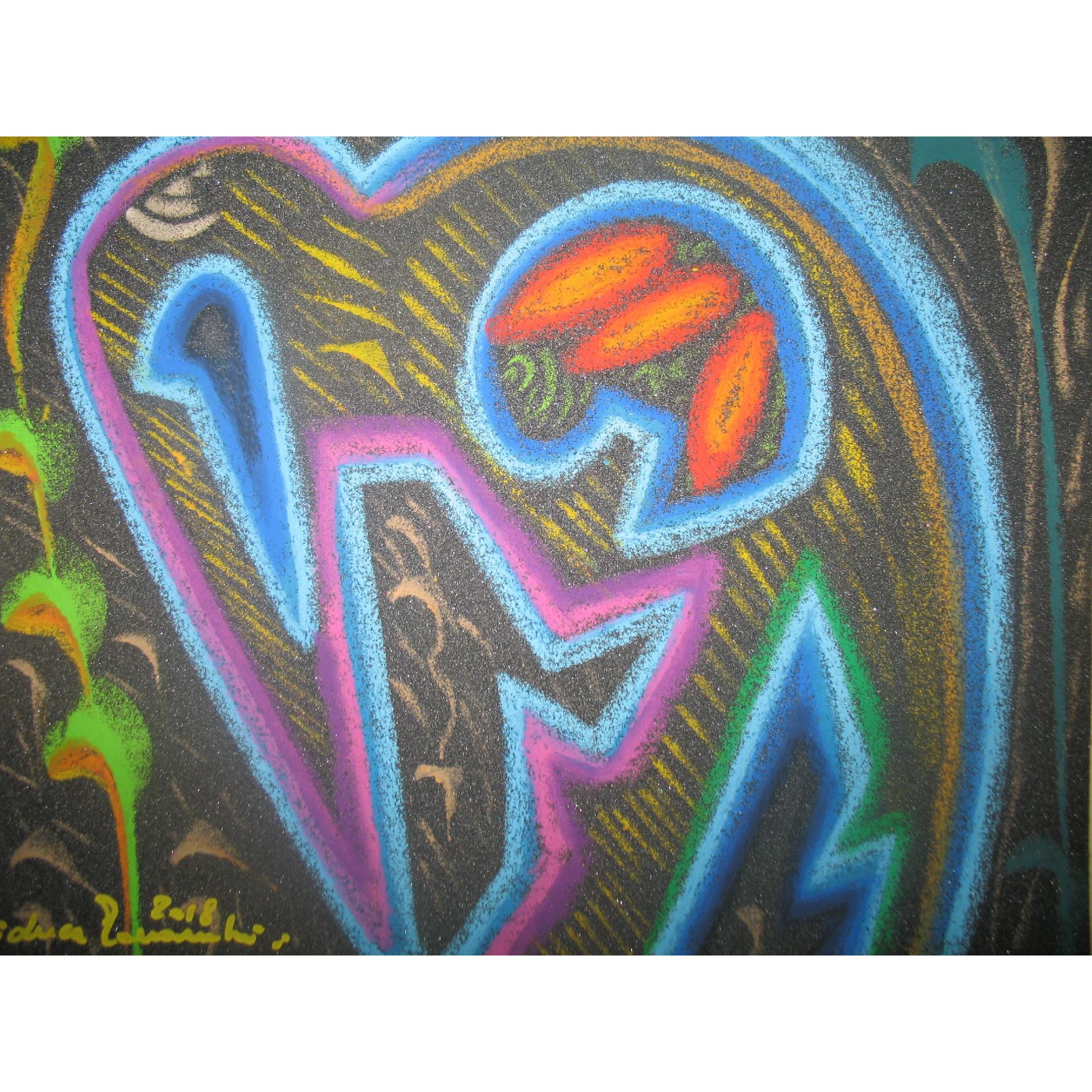 Lavoro realizzato a pastello ad olio su carta abrasiva. Il quadro è in vendita incorniciato insieme al passepartout con vetro o plexiglass.